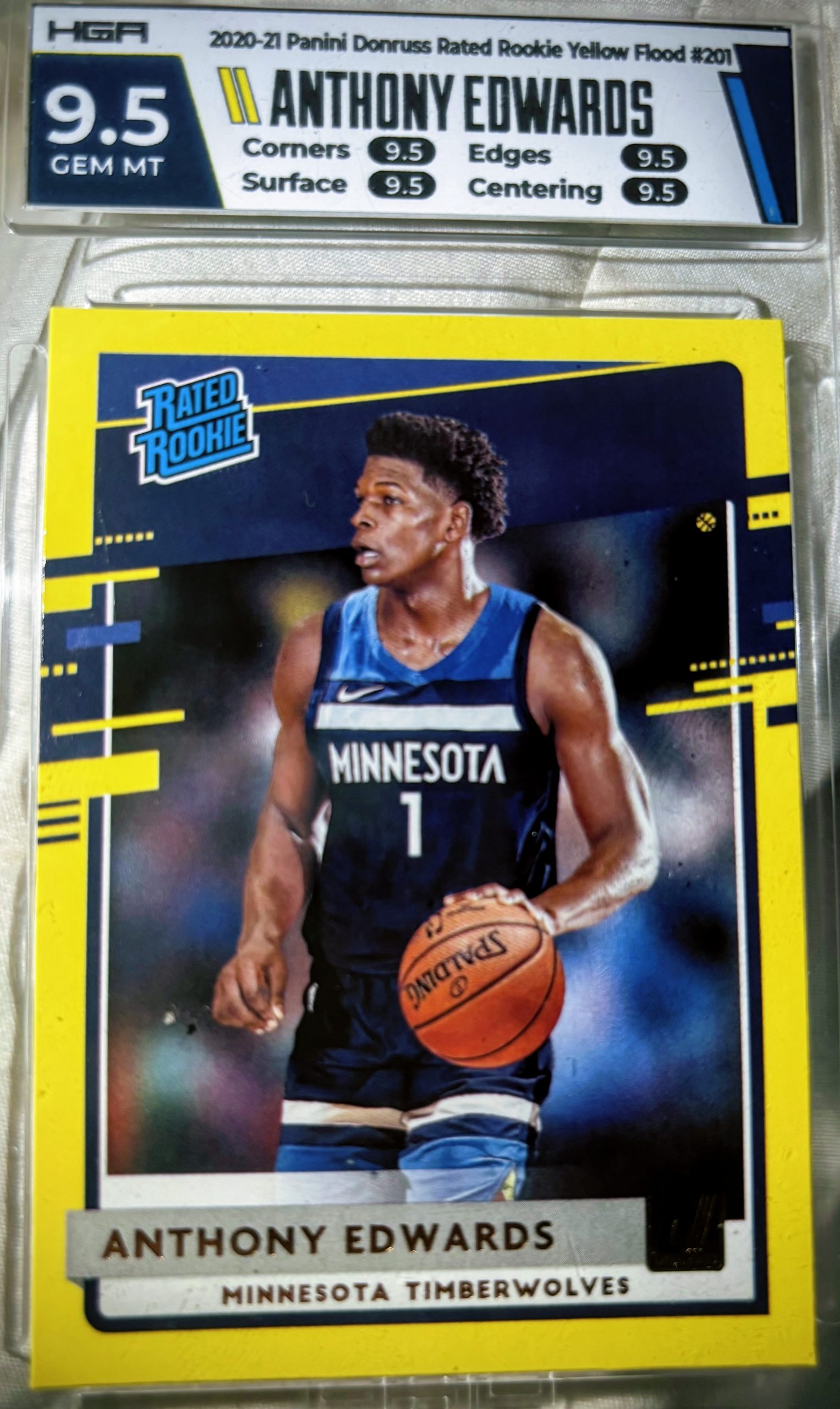 2020-21 PANINI DONRUSS RATED ROOKIE YELLOW FLOOD EXCLUSIVE SSP RC ANTHONY EDWARDS GRADED GM-MT 9.5