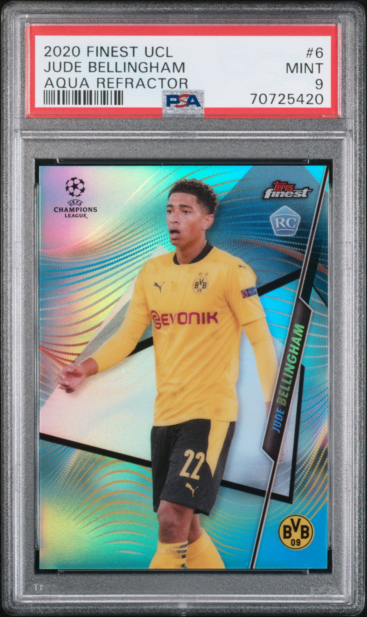 2020 TOPPS FINEST UCL JUDE BELLINGHAM ROOKIE AQUA REFRACTOR 39/75 PSA 9