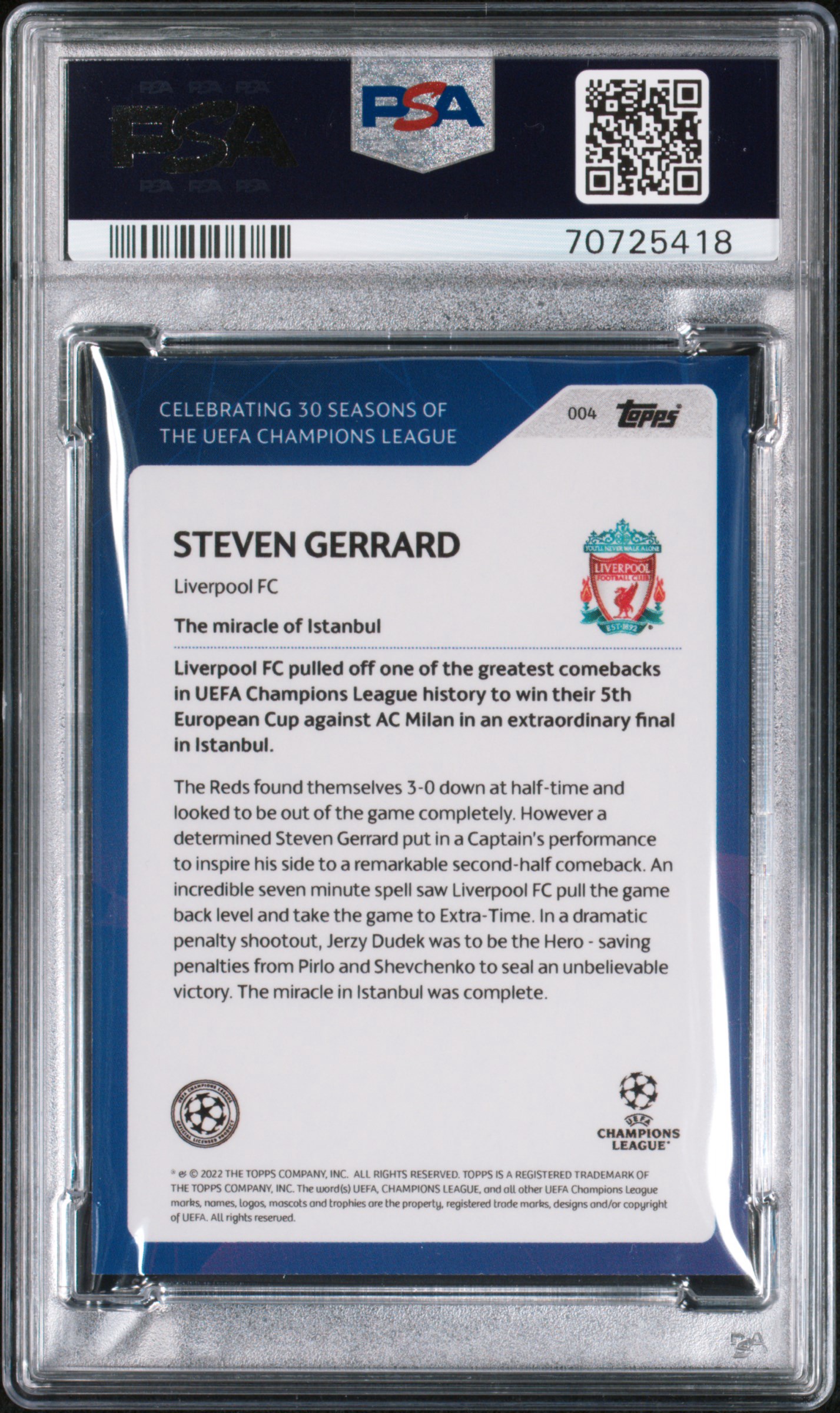 2022 TOPPS UEFA CHAMPIONS LEAGUE 30 SEASONS CELEBRATION #4 STEVEN GERRARD 30 SSN CELEBRATION-AUTO PSA 9