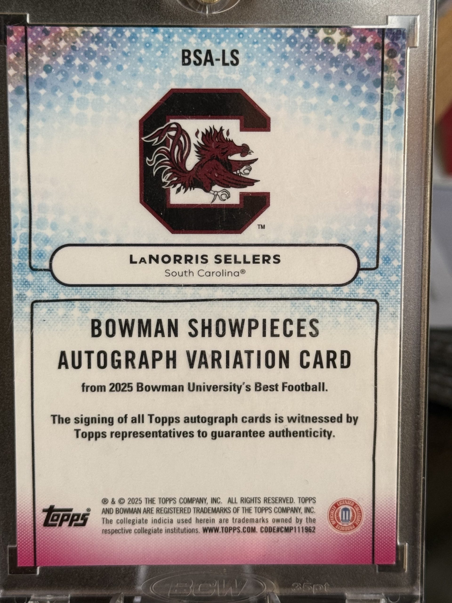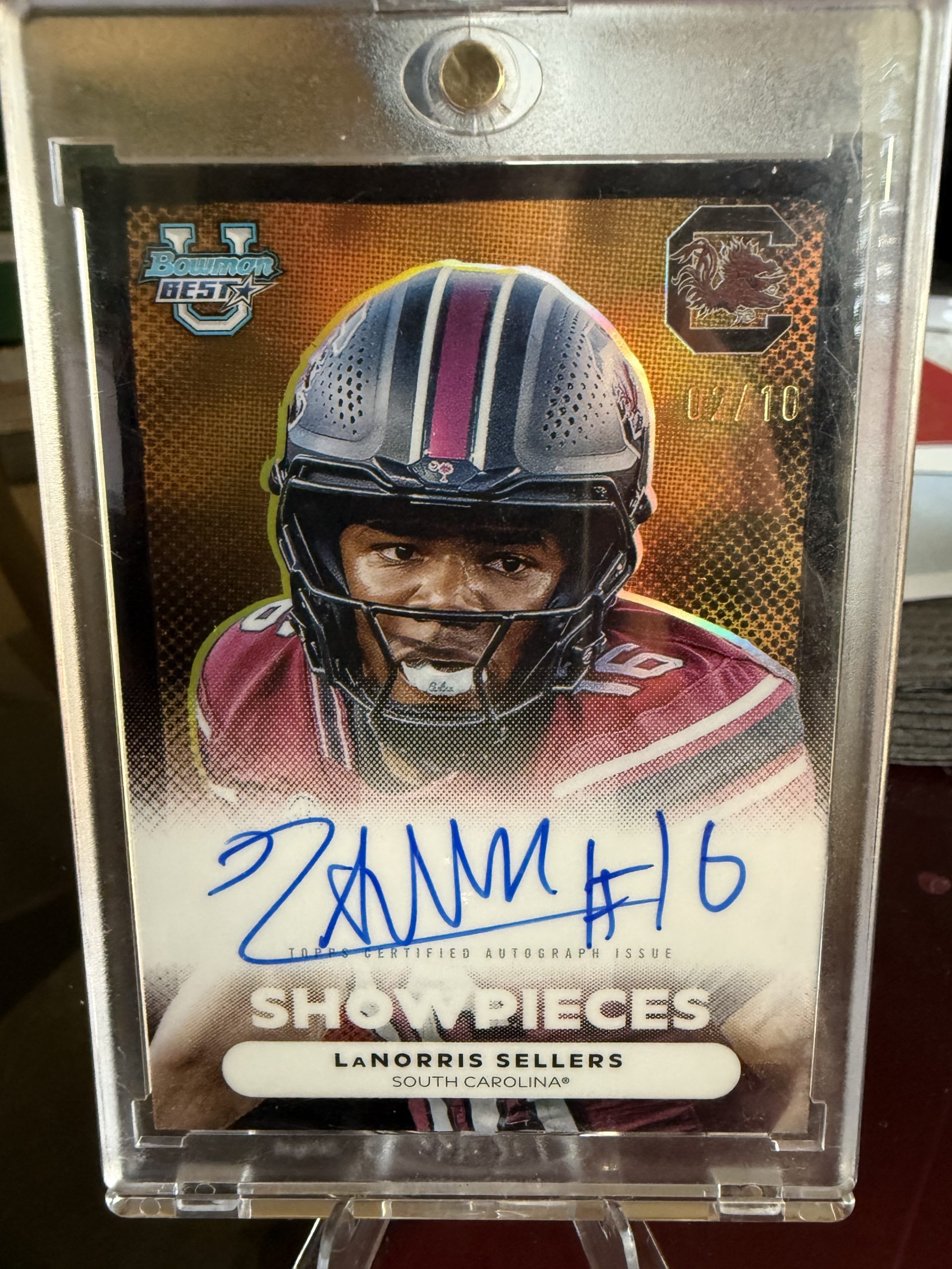 2025 BOWMAN CHROME U BEST SHOWPIECES LANORRIS SELLERS AUTO /10 BLACK BORDER