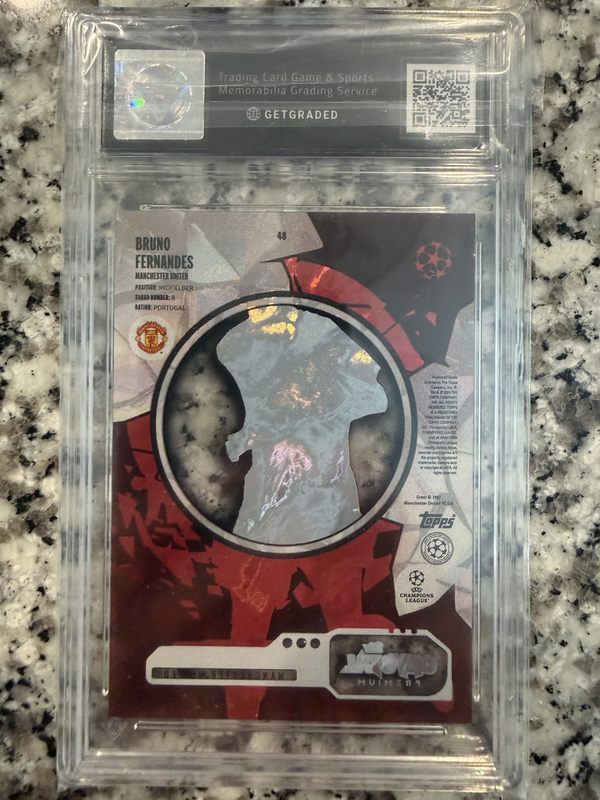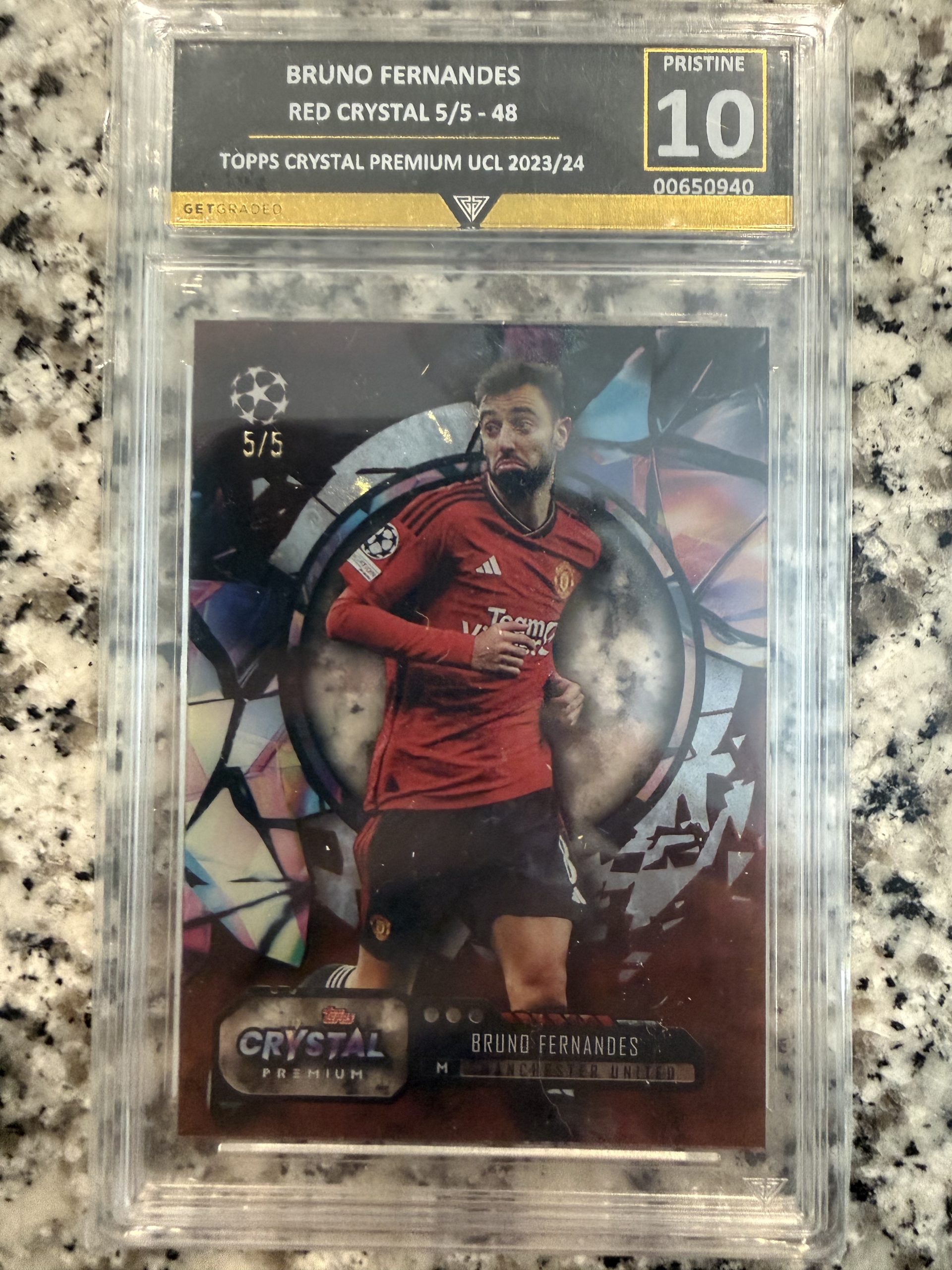 BRUNO FERNANDES MANCHESTER UTD GETGRADED 10 RED 5/5 TOPPS CRYSTAL