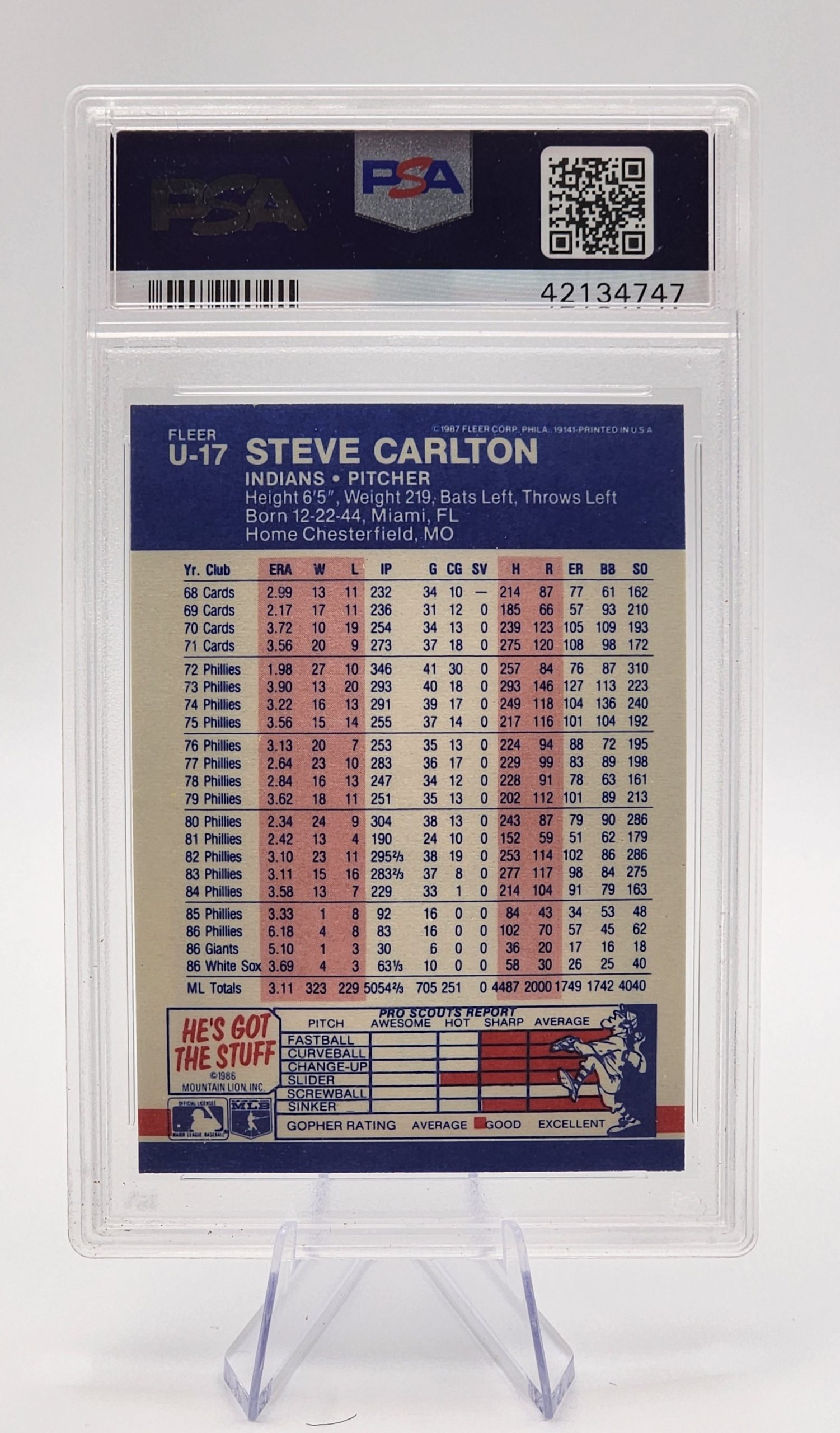 Item To Be Received: Steve Carlton 1987 Fleer Update Glossy #U-17 PSA 9