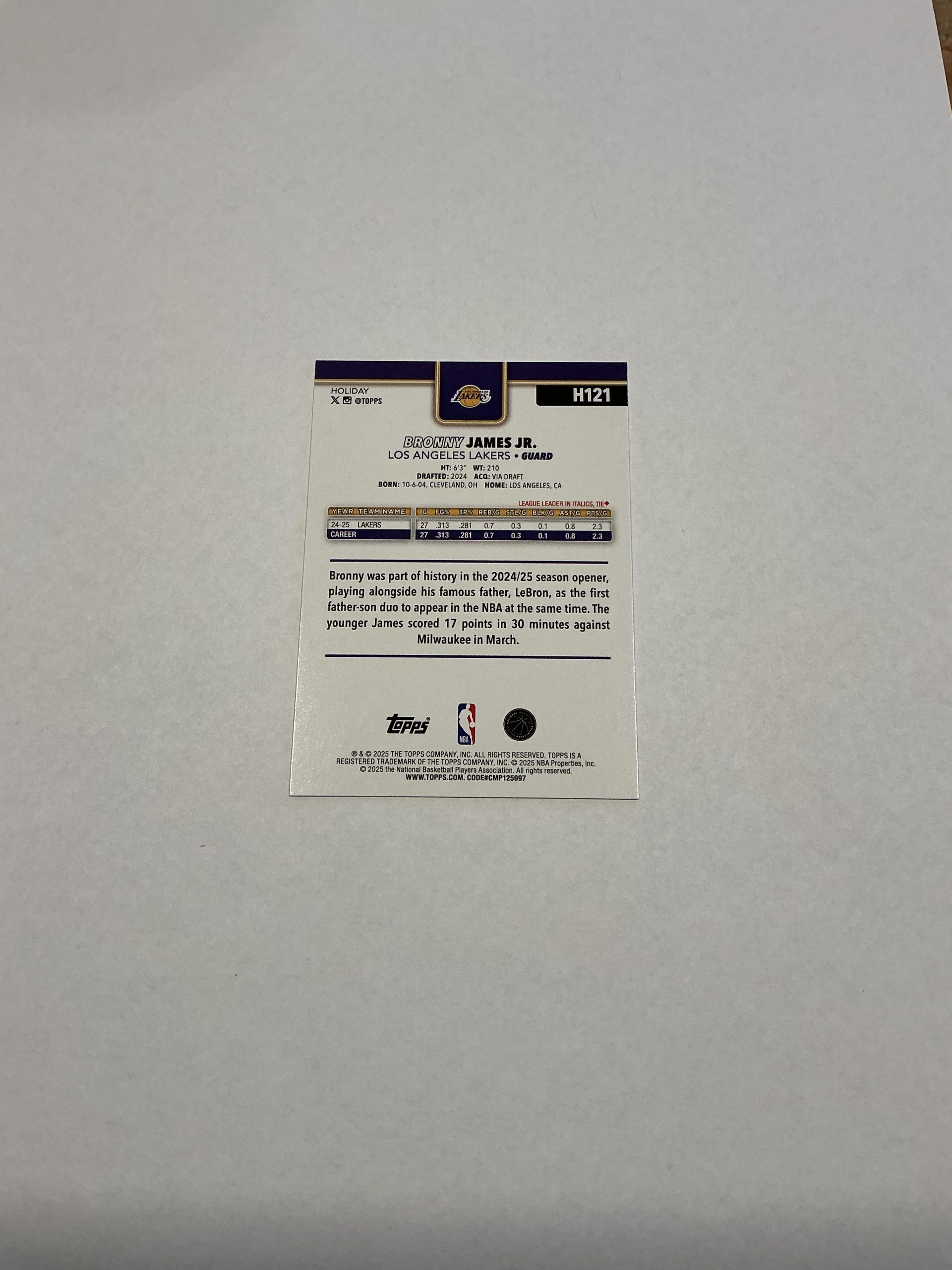 Topps Bronny James Jr. H121 2025/26 Holiday