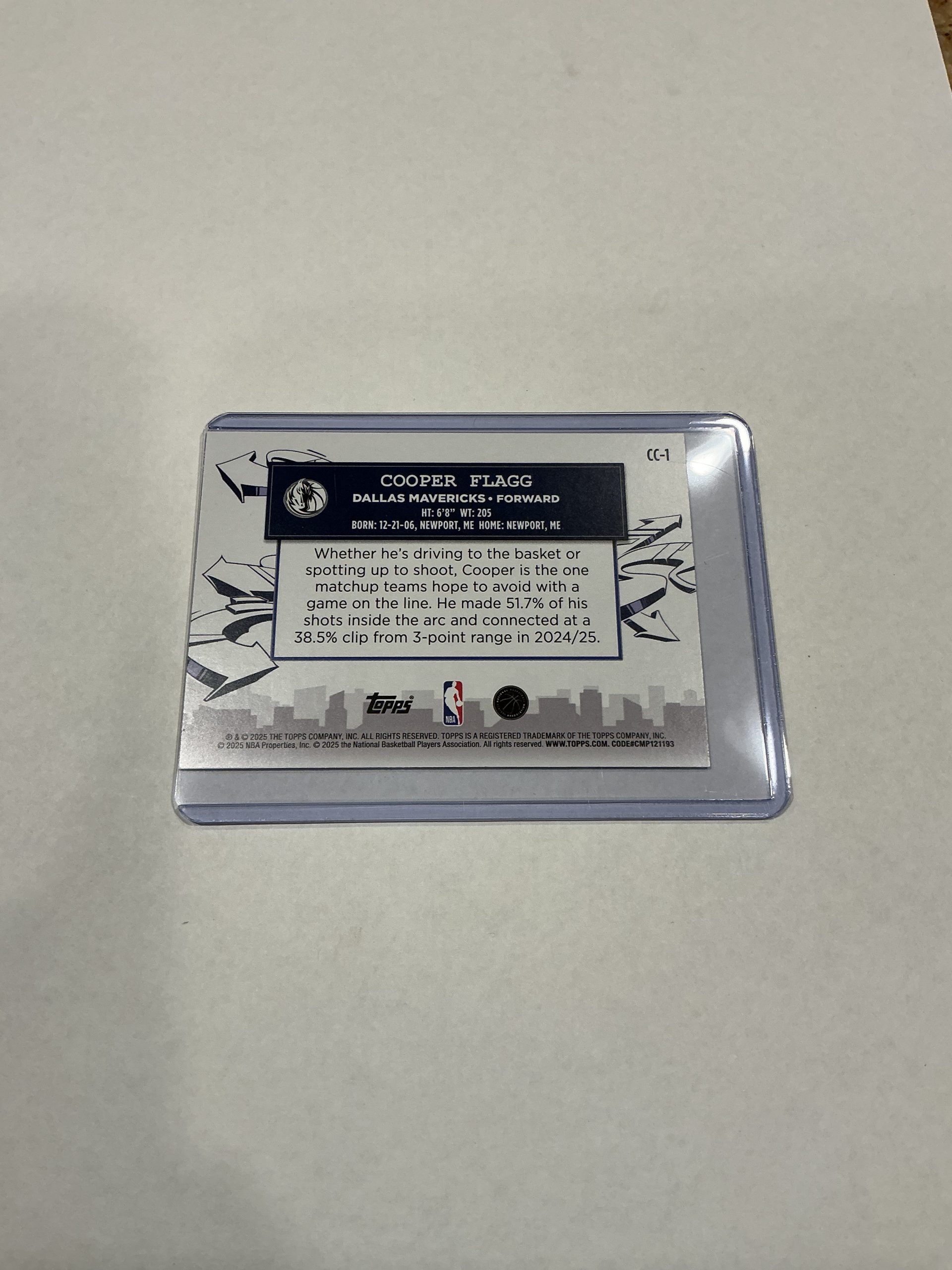 Cooper Flagg “Clutch City Prospects” rookie card.  In great condition and will ship in a protective sleeve.