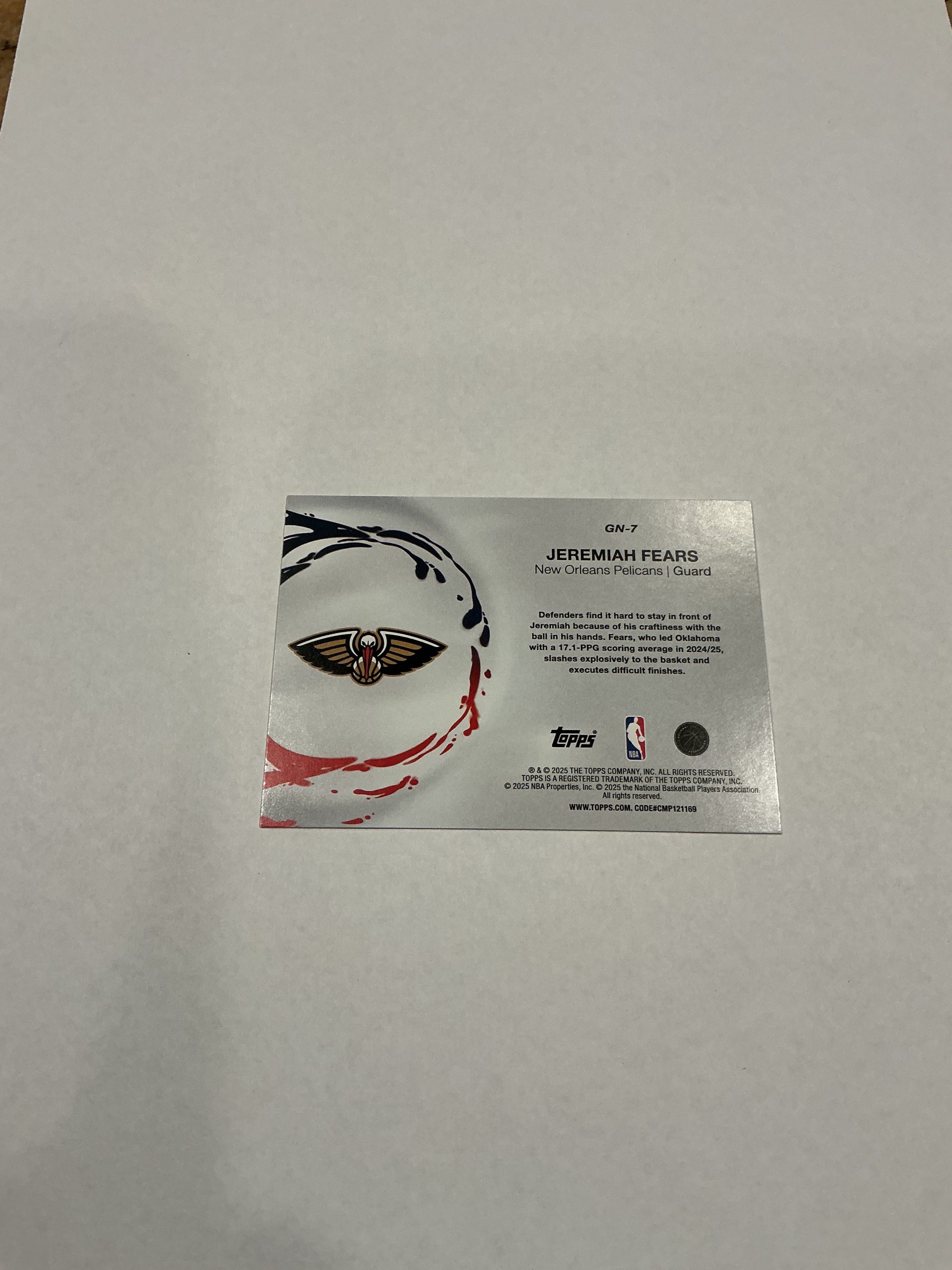 Topps Jeremiah Fears RC “Generation Now” GN-7. Great condition and will ship in a protective sleeve.