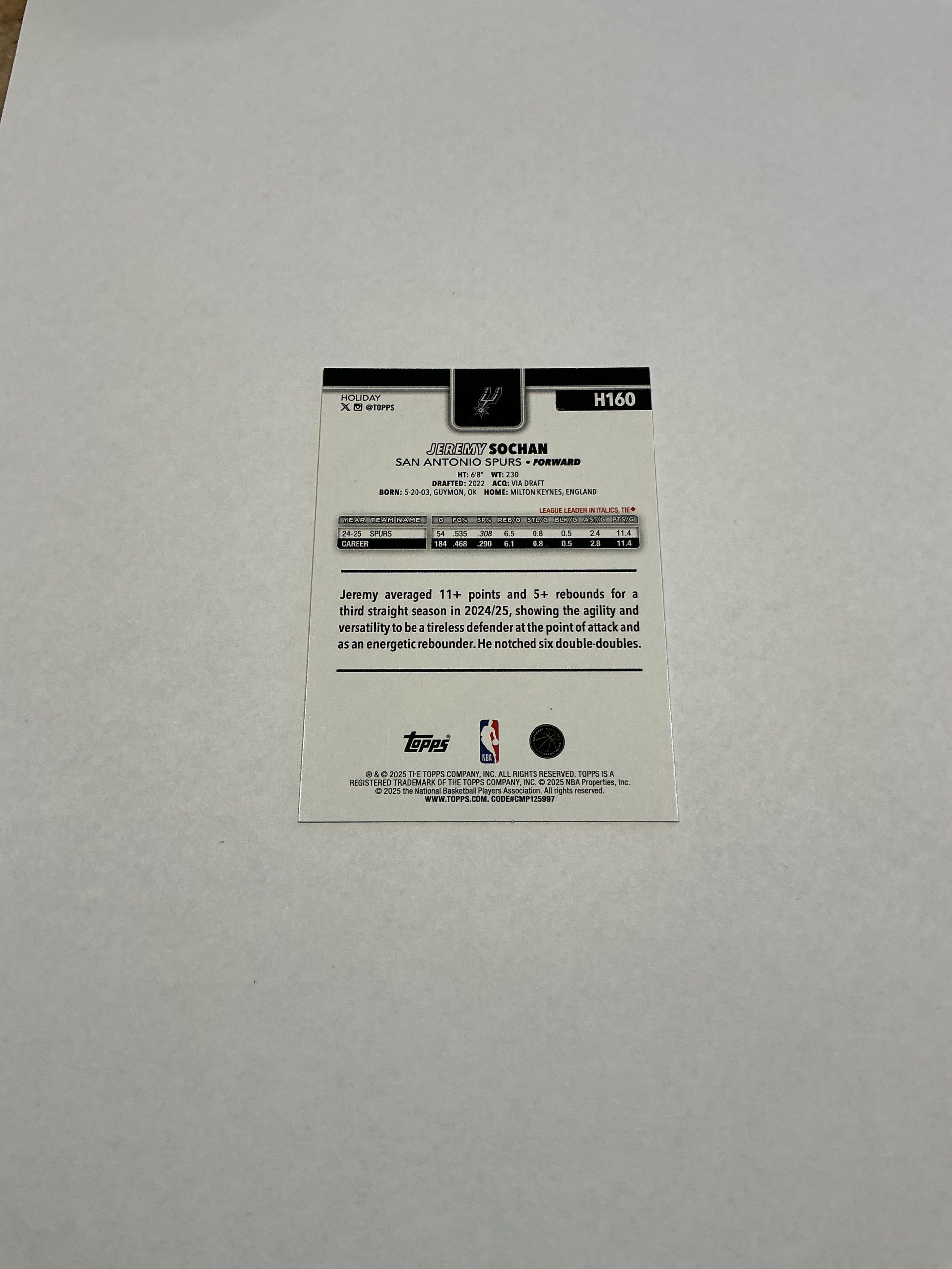 Topps Jeremy Sochan H160 2025/26 Holiday edition. Like new condition.