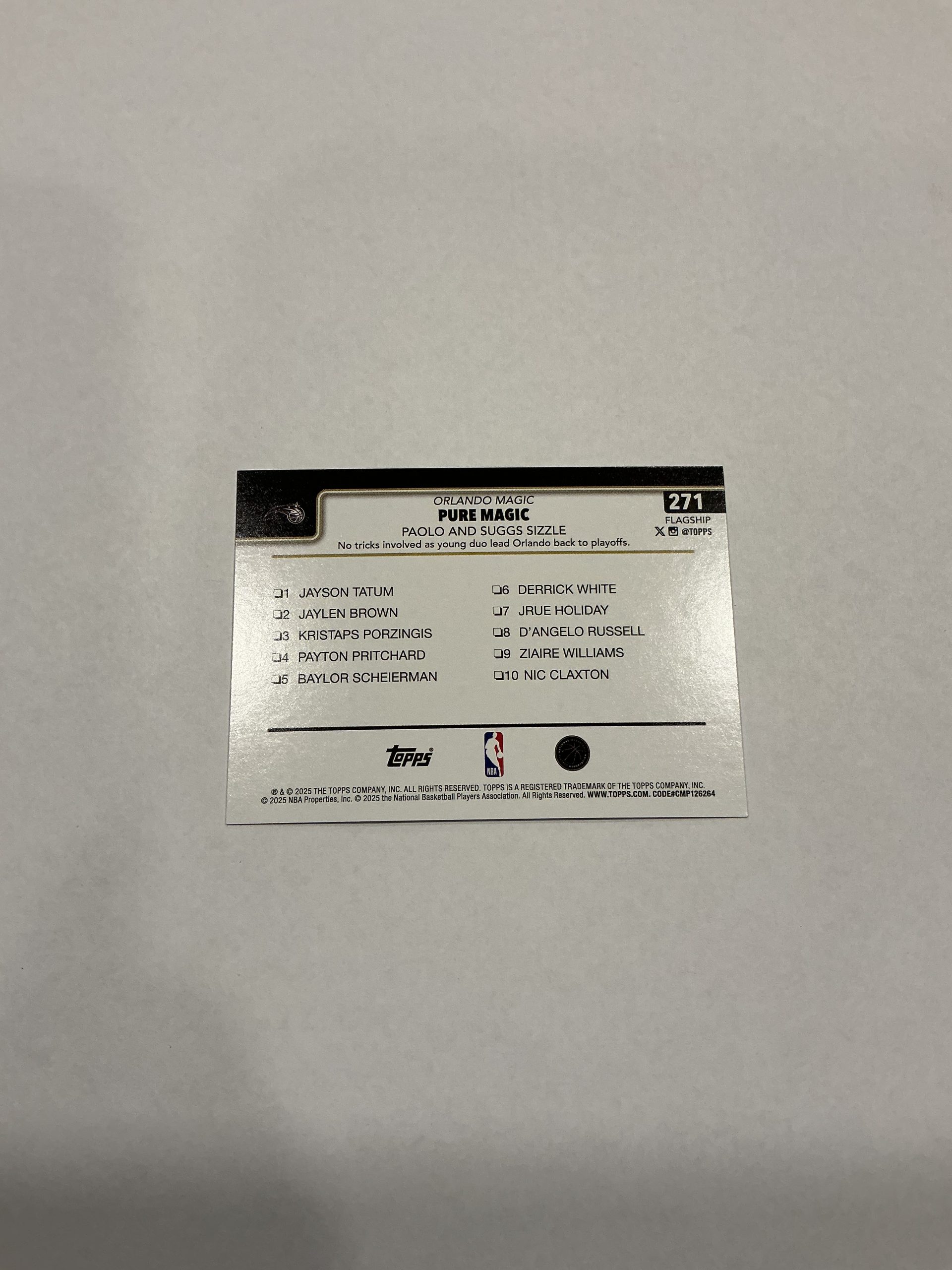 Topps Pure Magic Paolo and Suggs Sizzle Blackout Rainbow Foil #271. In great condition and will ship in a protective sleeve.