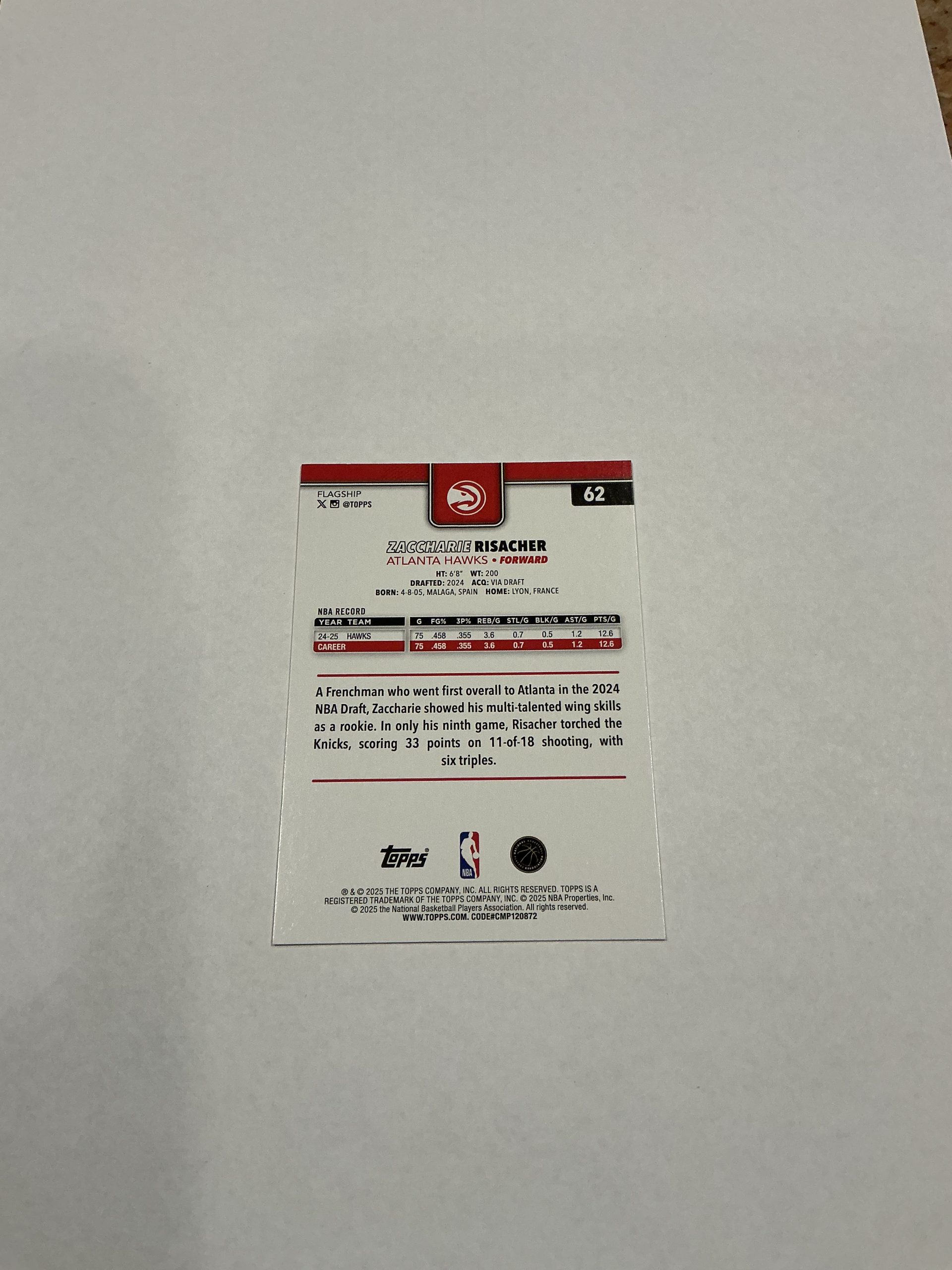 Topps Zaccharie Risacher (All Rookie Team) #62.  Great condition and will ship in a protective sleeve.